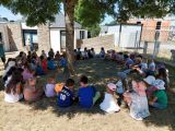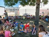 En ce dernier jour de classe, les 4 classes se sont réunis à l'ombre de l arbre pour un goûter.